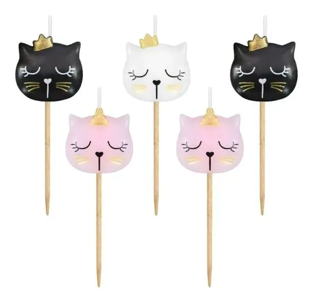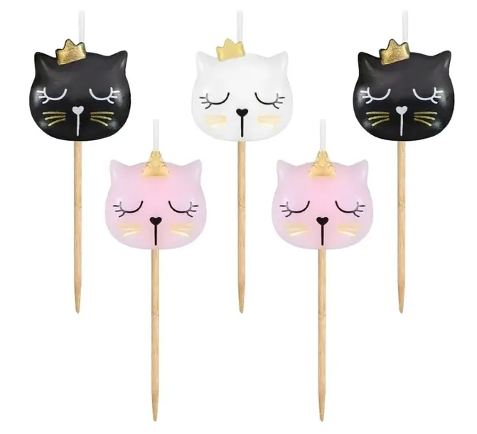 Świeczki urodzinowe na tort kotki zestaw 5 szt urodziny różowe czarne mix