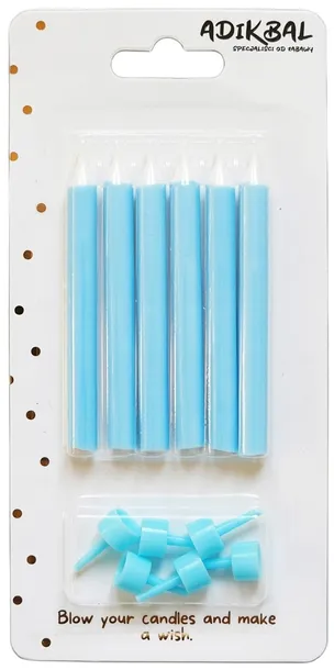 Świeczki urodzinowe w kolorze pastelowym niebieskim - 6 sztuki