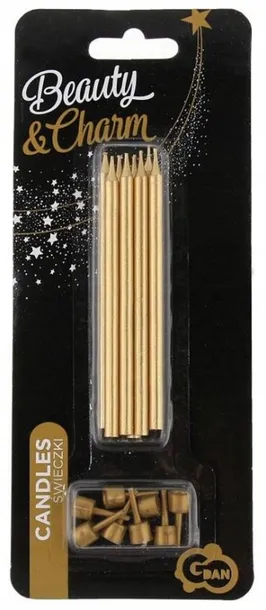 Świeczki urodzinowe z podstawkami. B&C. Złote 10cm