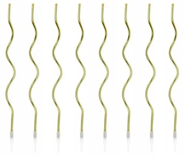 Świeczki urodzinowe zakręcone, w kolorze złotym metalizowanym, wysokość ok. 14 cm. Zestaw zawiera 8 świeczek i podstawek.(1 op. /