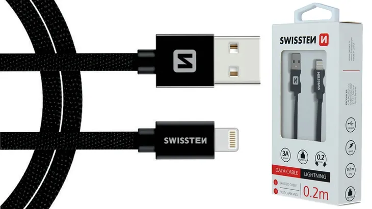 ✅ Wysokiej jakości Kabel USB / Lightning 0,2m w oplocie marki SWISSTEN