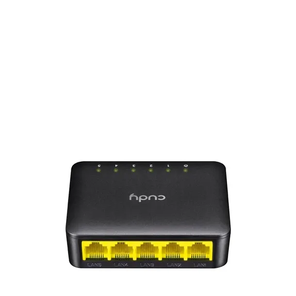 Switch wyposażony w 5 gigabitowych portów RJ45 umożliwia przesyłanie danych z maksymalną prędkością 1000 Mbps (1 Gbps) na każdy port