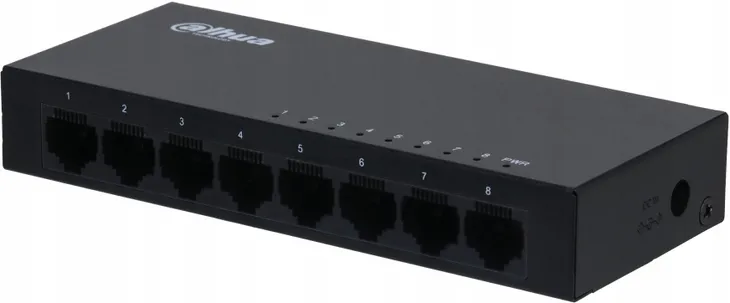SWITCH DAHUA PFS3008-8GT-V2 to 8-portowy, niezarządzalny switch gigabitowy, który idealnie sprawdzi się w każdej sieci domowej i biurowej. Dzięki możliwości obsługi portów o przepustowości 10/100/1000 Mb/s, użytkownicy mogą cieszyć się szybkim i niezawodnym transferem danych. Ten model charakteryzuje się wysoką wydajnością, co czyni go świetnym wyborem dla osób, które potrzebują stabilnego połączenia oraz szybkiego przesyłania plików.