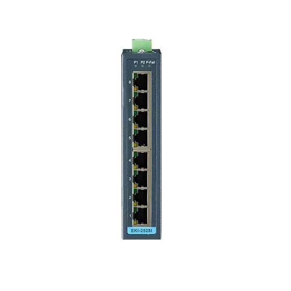 EKI-2528 to kompaktowy i wytrzymały switch, zaprojektowany do pracy w trudnych warunkach przemysłowych. Posiada metalową obudowę o stopniu ochrony IP30, co zapewnia ochronę przed kurzem i innymi zanieczyszczeniami. Switch obsługuje funkcję auto-negocjacji prędkości i auto-MDI/MDI-X, co ułatwia instalację i konfigurację.