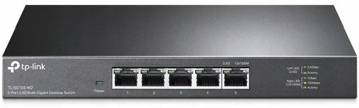 - Pięć portów 2,5 Gb/s. Wyposażony w 5 portów 2,5-gigabitowych przełącznik TL-SG105-M2 pozwala w pełni wykorzystać potencjał sieci o wielogigabitowej przepustowości oraz zaawansowanych technologicznie urządzeń, jednocześnie zapewniając 25 Gb/s przepustowości przełączania.
