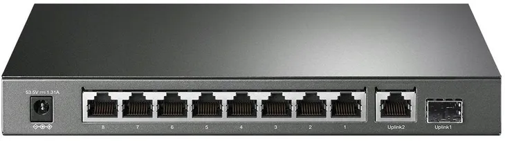 - 8 portów PoE+, zasilanie i przesył danych za pomocą jednego przewodu