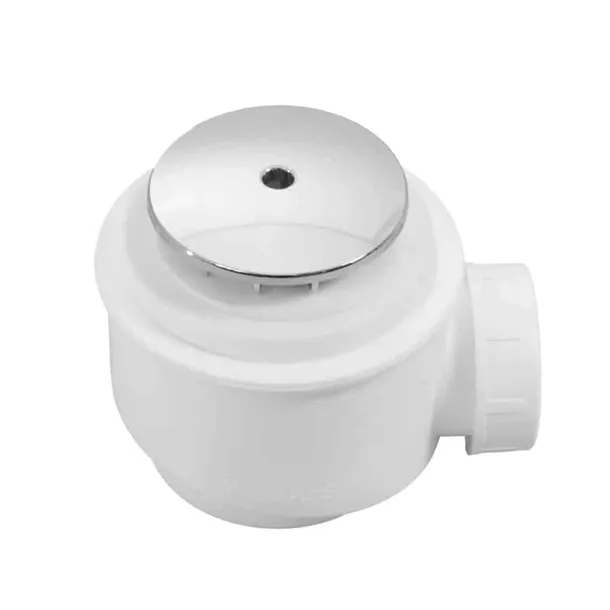Syfon brodzikowy o przepływie 45 l/min z chromowanym grzybkiem ABS.