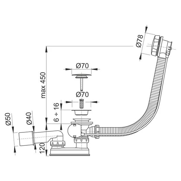 Syfon Wannowy Alcaplast Automatyczny Czarny - Mat