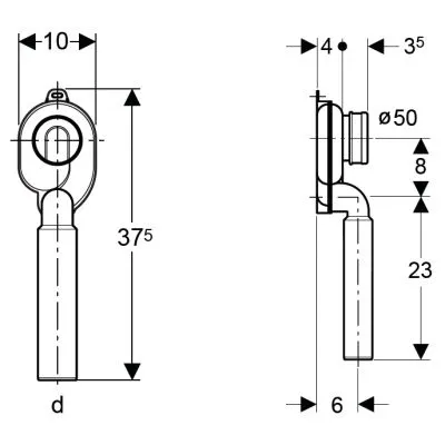 DANE TECHNICZNE Wysokość zasyfonowania (mm) 50 mm Materiał Tworzywo sztuczne Średnica zewnętrzna rury odpływowej: 50 mm