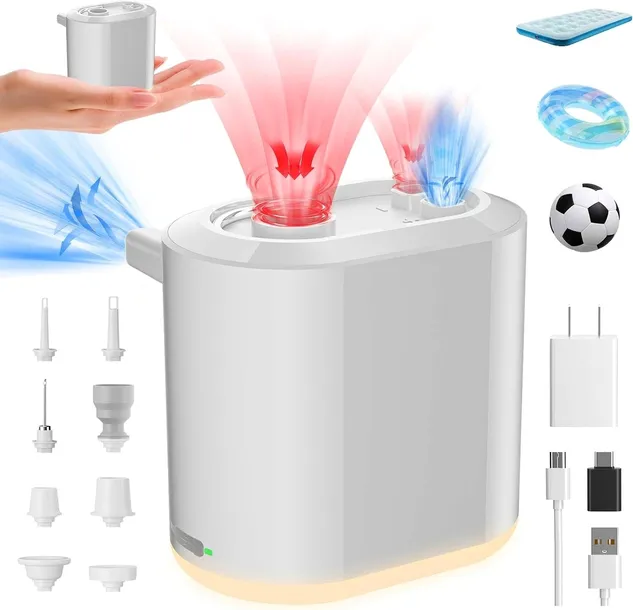 Kompresor jest mały, lekki i łatwy do przenoszenia. On i wszystkie dostarczone końcówki łatwo mieszczą się w dołączonym woreczku, który można zawiesić na plecaku. Na weekendzie pod namiotem łatwo go rozpakujesz i wieczorem oświetlisz nim sobie drogę. Przy ognisku można go użyć do rozdmuchania płomieni, aby nie trzeba było pochylać się nisko i intensywnie dmuchać. Dzięki swoim kompaktowym rozmiarom kompresor jest łatwy do przechowywania, lekki i ma wiele praktycznych funkcji.