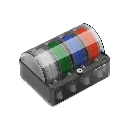Hermetyczne Uszczelnienie i Pochłaniacz Wilgoci: Obudowa systemu AMS posiada hermetyczne uszczelnienie oraz pochłaniacz wilgoci, co utrzymuje filamenty w optymalnym stanie, zapobiegając problemom związanym z wilgocią, takim jak zatykanie dyszy czy słaba przyczepność warstw.