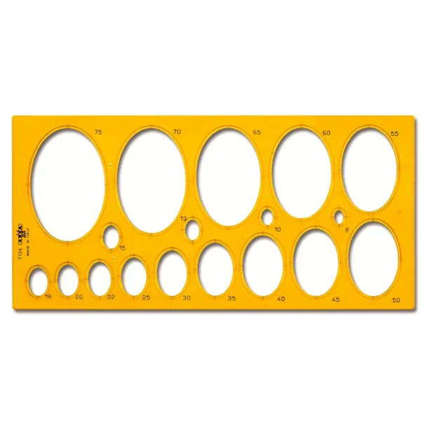 Szablon kreślarski do precyzyjnego rysowania elips w pracach technicznych, projektowych i szkolnych. Większy format zapewnia wygodę przy bardziej rozbudowanych rysunkach, a transparentne tworzywo ułatwia kontrolę nad liniami i układem elementów na papierze.