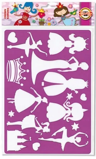 Szablony idealne do dziecięcych zabaw oraz samodzielnego przygotowywania różnego rodzaju ozdób. Do odrysowywania ołówkiem, cienkopisem, kredkami. Wzór księżniczka - motywy dziewczęce.