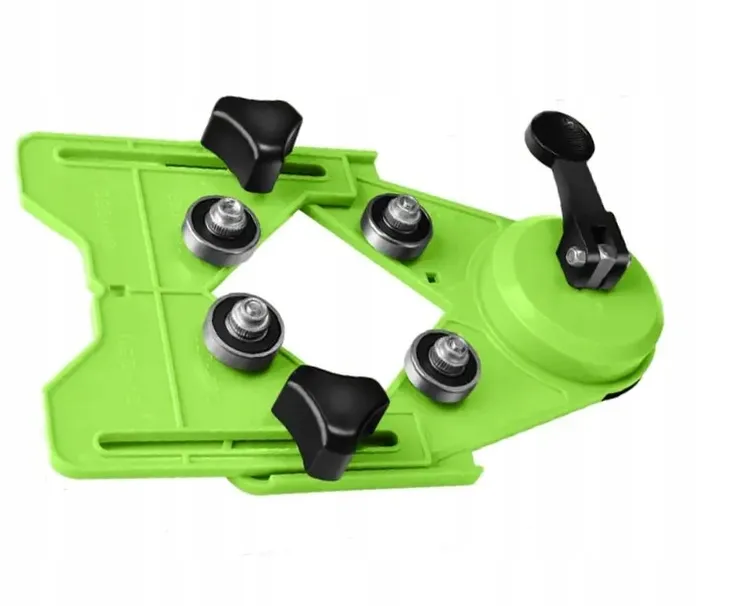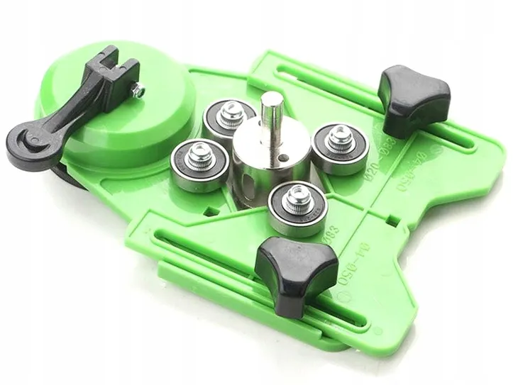 Prowadnica , szablon do wiercenia w płytkach ceramicznych lub innych materiałach. Mocowanie prowadnicy do płytek za pomocą silnej przyssawki w podstawie pozwala na mocowanie na płaszczyznach poziomych i pionowych. Centrowanie wiertła / koronki odbywa się między czterema łożyskami. Korpus prowadnicy wykonany jest tworzywa .
