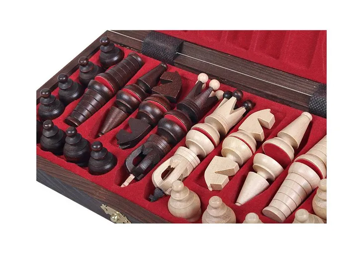 Szachy Royal Maxi są jednym z najpopularniejszych i najbardziej lubianych kompletów z naszej oferty szachów amatorskich. Ze względu na swe wymiary komplet może być używany jako podróżniczy. Przepiękne figury wykonane są z drewna buku i grabu. W zestawie tym zastosowano figury o wysokości Króla 65mm, takie same jak w zestawie Royal Mini CH152 Wypalana, składana szachownica o większych rozmiarach 310x155mm pozwoliła na umieszczenie w niej wkładki z oddzielnymi wgłębieniami na poszczególne figury. Rzeźbione szachy to bardzo gustowny ale i mądry prezent komunijny albo dzień dziecka. Ten model szachów jest chętnie kupowany jako prezent na dzień ojca lub dzień dziadka. Komplet dostępny jest w kolorze brązowym.
