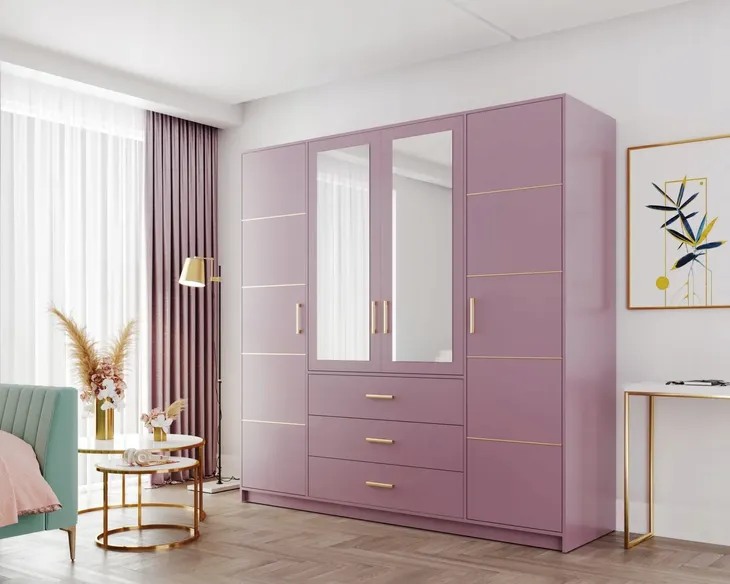 Szafa BALI II D4 idealnie sprawdzi się w salonie, przedpokoju oraz sypialni o klasycznym czy nowoczesnym wnętrzu. Jej niestandardowakolorystyka oraz złote elementy wykończenia zwrócą uwagę każdego.
