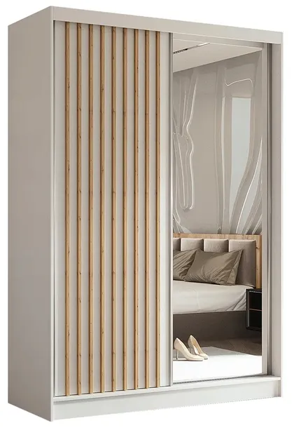 Szafa BOSTON z lamelami na drzwiach przesuwnych dostępne jest w kilku wariantach kolorystycznych do wyboru od nowoczesnej bieli, przez ciepły kolor dębu artisan po klasyczną i zawsze modną czerń. Duże lustro na drzwiach sprawia, że szafa świetnie sprawdzi się w małej sypialni czy w wąskim przedpokoju, ponieważ optycznie powiększy przestrzeń oraz swoim nowoczesnym wyglądem wzbogaci wystrój wnętrza.