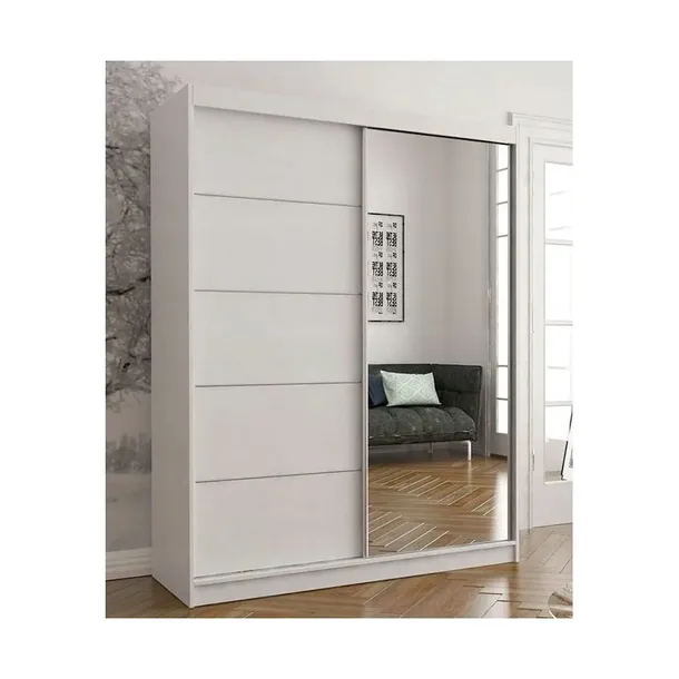 Szafa z lustrem na froncie. Modne zestawienia kolorystyczne oraz funkcjonalność meble pozwolą dopasować szafę do wielu wnętrz. Szafa posiada przesuwny front co gwarantuje wygodne użytkowanie mebla. Zastosowany system drzwi przesuwnych ułatwi domownikom codzienne użytkowanie. Doskonale sprawdzi się w sypialni, przedpokoju lub korytarzu.