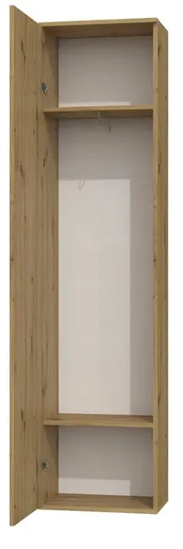 - W środku szafy dwie praktyczne półki oraz uchwyt na wieszaki.