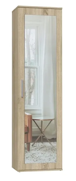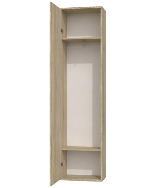 - W środku szafy dwie praktyczne półki oraz uchwyt na wieszaki.