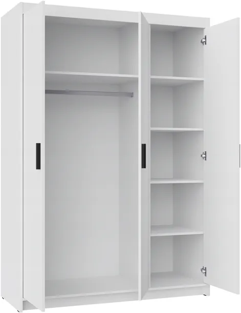 - za drzwiami lewymi i środkowymi znajdują się jedna półka i drążek ubraniowy, za drzwiami prawymi znajdują się cztery półki