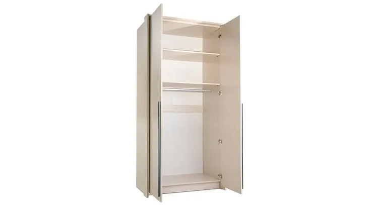 SZAFA GENUA 105 pokazuje, że w prostocie tkwi piękno, a czarne uchwyty tylko podkreślają wyjątkowość tego mebla. Wpisze się we wnętrze typu sypialnia, ale również sprawdzi się w przedpokoju czy pokoju gościnnym. Dzięki dwóm półkom oraz miejscem na wieszaki skryje wiele rzeczy, które będą uporządkowane i zawsze pod ręką.