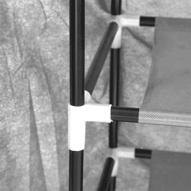 ✅SPECYFIKACJA Typ produktu: Szafa tekstylna składana Wymiary całkowite:- Szerokość: 58 cm- Głębokość: 28 cm - Wysokość: 160 cm Średnica metalowych rurek: 10 mm Materiał pokrycia: Włóknina polipropylenowa (oddychająca, trwała, lekka) Konstrukcja szkieletu: Rurki stalowe malowane proszkowo Złącza (konektory): Tworzywo sztuczne wysokiej jakości (odporne na pęknięcia) Kolor: Szary – pasuje do różnych wnętrz System zamykania: Roll-up z dwoma zamkami błyskawicznymi Wnętrze szafy:- 9 półek Montaż: Bez użycia narzędzi, szybki i intuicyjny Waga: Lekka konstrukcja ułatwiająca transport i przenoszenie