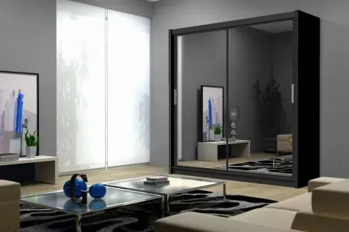 Szafa przesuwna Paris 160 z dużymi lustrami to elegancki mebel pokojowy ułatwiający przechowywanie garderoby. Drzwi szafy Paris 160 zamontowano na aluminiowych prowadnicach w systemie przesuwnym, co pozwala zaoszczędzić sporo przestrzeni i gwarantuje niezawodną pracę. Wnętrze szafy skrywa solidny drążek na ubrania oraz praktyczne wnęki umieszczone w dolnej i górnej części. Szafa przesuwna Paris 160 jest dostępna w czterech atrakcyjnych kolorach.