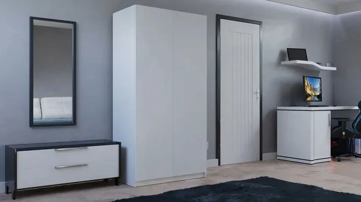 Mebel wykonany z najwyższej jakości płyty laminowanej odpornej na zarysowania i wilgoć wraz z wzmocnieniami obrzeży ABS.