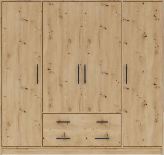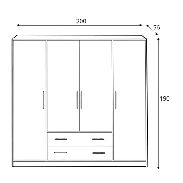 - wewnątrz szafy po prawej i po lewej stronie znajduje się drążek i półka a na środku 3 półki