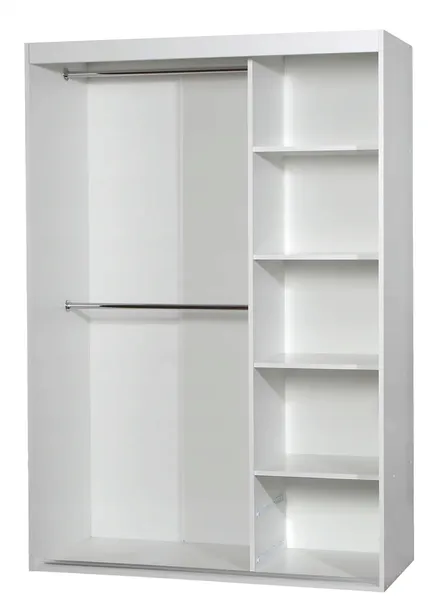 Klasyczna bryła szafy, która pomoże zaprowadzić porządek w Twoim domu. Neutralna kolorystyka czystej bieli, którą możesz złamać dodatkami drewnianego dekoru w postaci dębu sonoma lub całkowicie oddać się naturze i wybrać całkowicie drewnianą imitację dekoru. Wnętrze szafy jest funkcjonalne i pozwoli na organizację przestrzeni w idealny sposób.