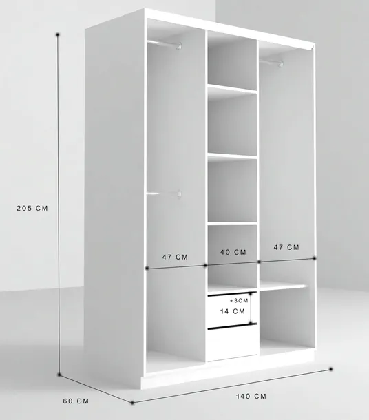 To prawdziwa garderoba, zamknięta w jednym meblu. Została ona zaopatrzona w drzwi harmonijkowe, które z jednej strony stanowią oszczędność miejsca w sypialni, z drugiej umożliwiają dostęp do całej zawartości szafy. Ponadto, drzwi zaopatrzono w system WING - szczególnie przydatny w sypialni, gdzie spokój i cisza cenione są najbardziej.