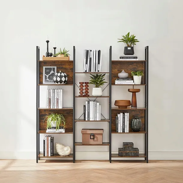 PODWÓJNY REGAŁ NA KSIĄŻKI, KWIATY, 14 PÓŁEK, RUSTYKALNY BRĄZ, W STYLU LOFT