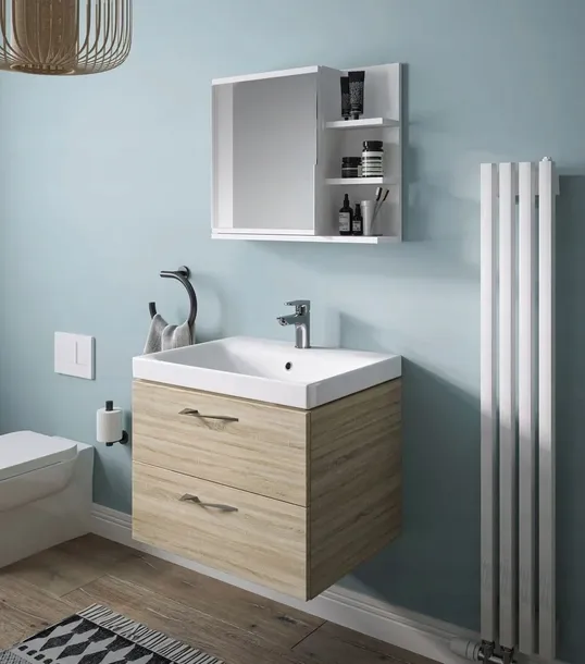 Szafka do samodzielnego montażu. Przejrzysta instrukcja i komplet akcesoriów montażowych w zestawie (w tym kołki rozporowe do ściany). Szafka jest zawieszana na regulowanych zawieszkach (regulacja boczna i wysokości). Nie musisz się martwić o dokładność wiercenia.
