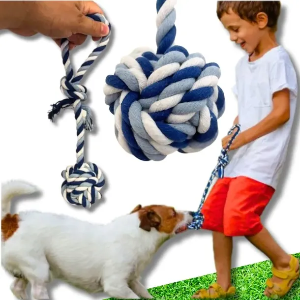- ZABAWKA DLA PSA SZARPAK SZNUR PLECIONY DUŻY KULA DLA ŚREDNICH I DUŻYCH PSÓW