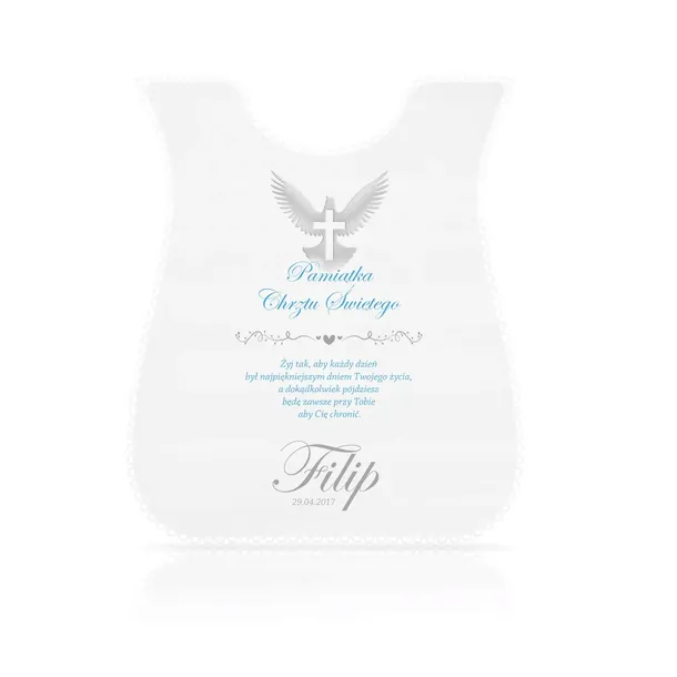 - na szatce znajduje się nadruk: imię dziecka, data Chrztu i dedykacja.