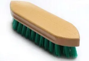 Szczotka do kopyt wykonana z włosia sztucznego nabijanego maszynowo. Rękojeść z lakierowanego drewna bukowego. Kolory włosia są losowe.