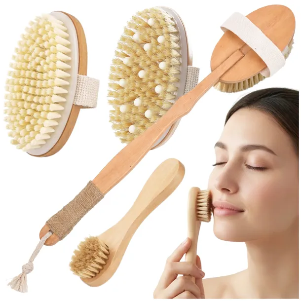 ✅ W zestawie znajdują się szczotki z naturalnej szczeciny, które są odpowiednie także dla skóry wrażliwej, przy zachowaniu prawidłowej techniki masażu. Naturalna szczecina świńska skutecznie oczyszcza skórę, nie powodując podrażnień, a drewniane oprawy są trwałe i wygodne w użytkowaniu. Różne kształty szczotek pozwalają dopasować je do masażu całego ciała, twarzy oraz trudno dostępnych miejsc.