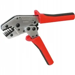 Szczypce do zagniatania tulejek kablowych z pięcioma gniazdami zaciskowymi.