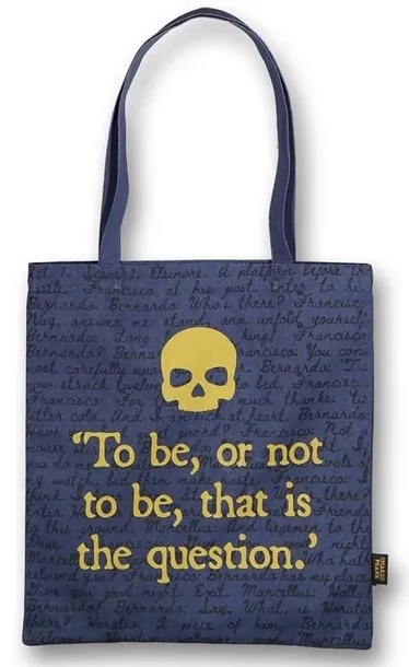 Oto stylowa torba "Hamlet" od Half Moon Bay - idealna dla miłośników Szekspira i świadomego stylu.Na granatowym tle torby widnieje złoty napis "To be, or not to be, that is the question."oraz prosty symbol czaszki - klasyczne odniesienie do jednej z najbardziej znanych kwestii w literaturze dramatu, cytowanej przez Hamleta .Wykonana z bawełny z recyklingu - ekologiczna, wytrzymała i przyjazna dla środowiskaWymiary: 38cm (wysokość) 42cm (szerokość) - idealna na codzienne zakupy, książki lub drobiazgi