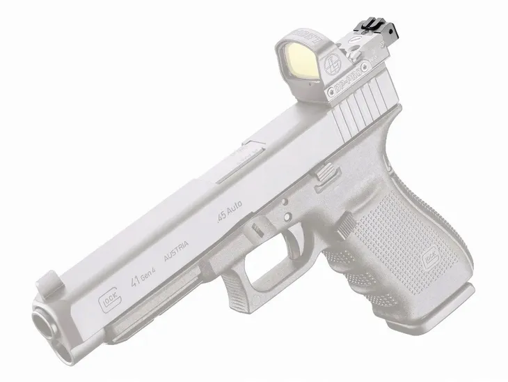 Szerbinka do kolimatora Leupold DeltaPoint Pro Reflex Sight po montażu idealnie pokrywa się z kropką, co pozwala na jednoczesne używanie kolimatora i mechanicznych przyrządów celowniczych.
