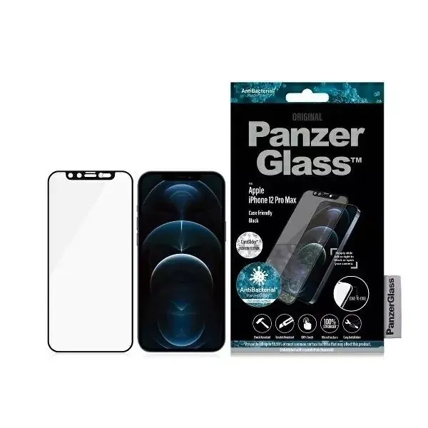 Szkło PanzerGlass E2E Microfracture do iPhone 12 Pro Max 6,7" CamSlider Swarovsky Case Friendly AntiBacterial czarny/black PanzerGlass