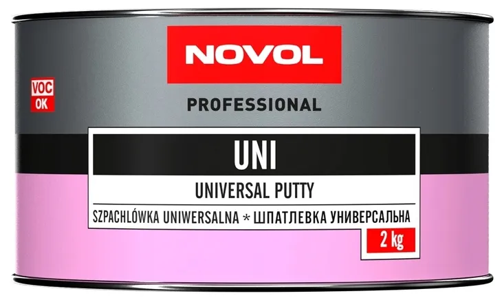 NOVOL UNI uniwersalna szpachlówka samochodowa na bazie nienasyconej żywicy poliestrowej, zalecana głównie do obróbki mechanicznej.