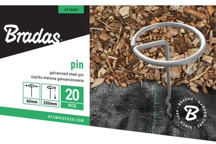 Szpilka metalowa galwanizowana w kształcie "G" przeznaczona do kotwienia agrowłóknin w ziemi. Specjalny kształt zapewnia maksymalne trzymanie agrowłókniny w ziemi.