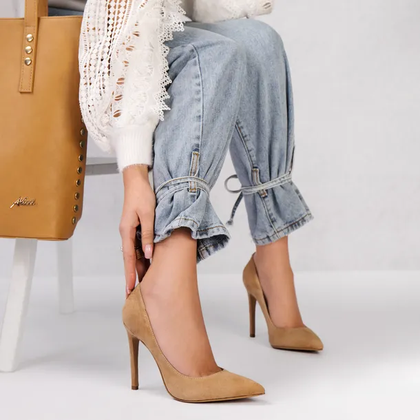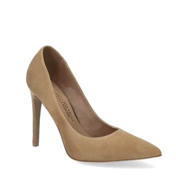 Carmelowe czółenka damskie wykonane z wysokiej jakości skóry naturalnej zamszowej, to model wyjątkowo elegancki i bardzo kobiecy. Stonowana kolorystyka dopasuje się do większości stylizacji. Wydłużone w szpic noski sprawią, że stopa będzie się prezentować zgrabnie i smukło. Wysoka szpilka korzystnie unosi sylwetkę, dodając jej centymetrów. Uczucie komfortu zapewnia wyściółka z koźlęcej skóry, która jest wyjątkowo miękka.