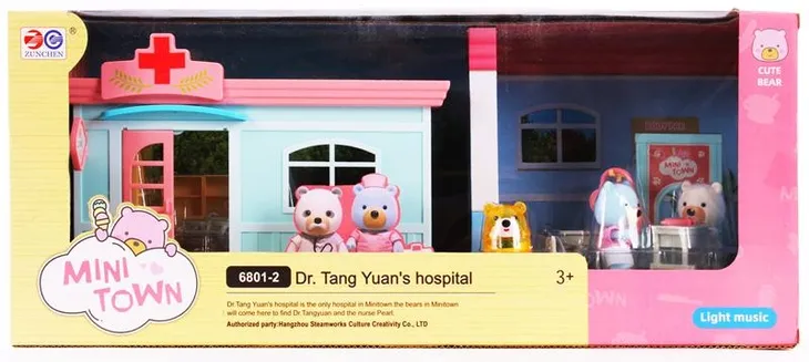 Szpital posiada ruchome elementy-otwierane drzwi i okna, posiada efekty dźwiękowe oraz świetlne, flokowane Misie posiadają ruchomą głowę, ręce oraz nogi.