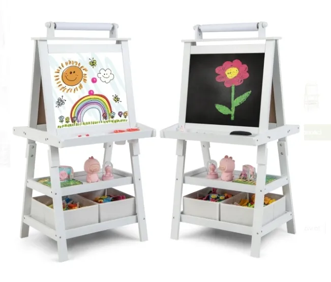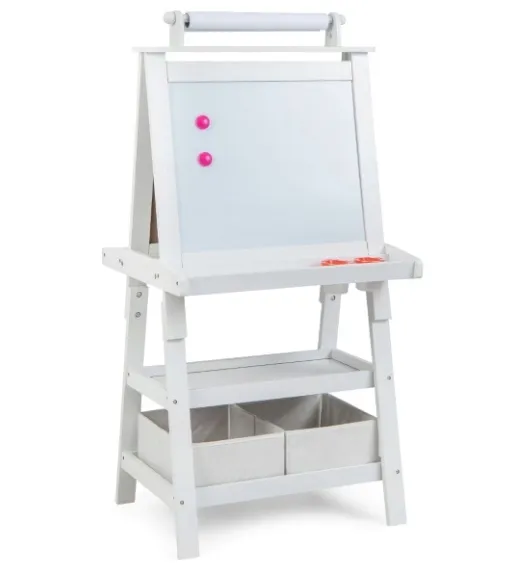 Nasza sztaluga to idealny prezent dla Twoich małych artystów! Dzięki czarno-białej tablicy Twoje dzieci mogą rysować z przyjaciółmi. Dwie tace na dole są idealne do umieszczenia wszystkich akcesoriów, aby zawsze mieć je pod ręką.
