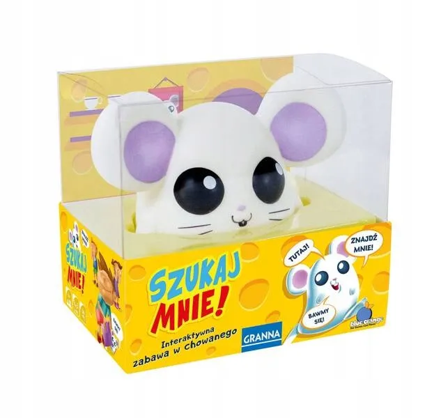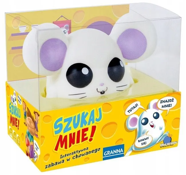 Ta niesforna myszka znów się schowała i coś podgryza! Pomożecie mi ją odnaleźć? Wytężcie słuch, słyszycie ją? Sprawdziliście kosz z ubraniami? A może za kanapą? Czy ktoś wołał z górnej półki z zabawkami? Postarajcie się odnaleźć jej kryjówkę. I doprowadzić ją do serowego pudełka.