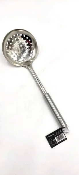 Szumówka linii PRACTIC marki GALICJA to produkt starannie wykonany z wysokiej jakości stali nierdzewnej. Elegancka rączka zakończona jest zgrabną pętelką z drutu, dzięki czemu łyżkę można zawiesić na relingu bądź stojaku na sztućce kuchenne.
