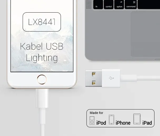 Najwyższej jakości kabel do iphone, służący zarówno do ładowania baterii jak również przesyłu danych między telefonem a innym urządzeniem wyposażonym w gniazdo USB, np. komputer, laptop.